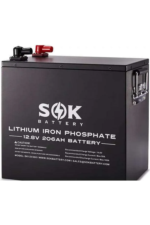 View full detailsThe SOK Battery 12V 206Ah LiFePO4 Lithium Iron Phosphate Battery Pack has a 7 years warranty, 3000~8000 cycles life span, and free maintenance. Fea...
