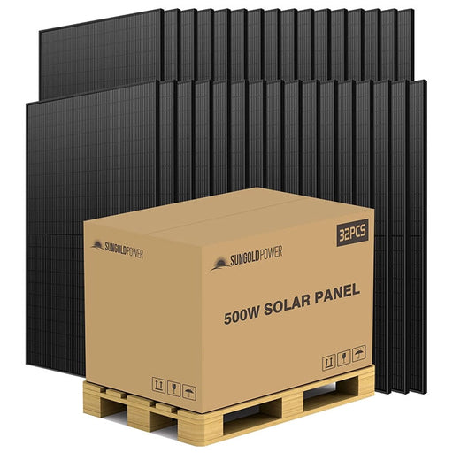 View full detailsSunGoldPower 500W Mono Black PERC Solar Panel Full Pallet The SunGoldPower 500W Mono Black PERC Solar Panel Full Pallet (32 panels) offers an...