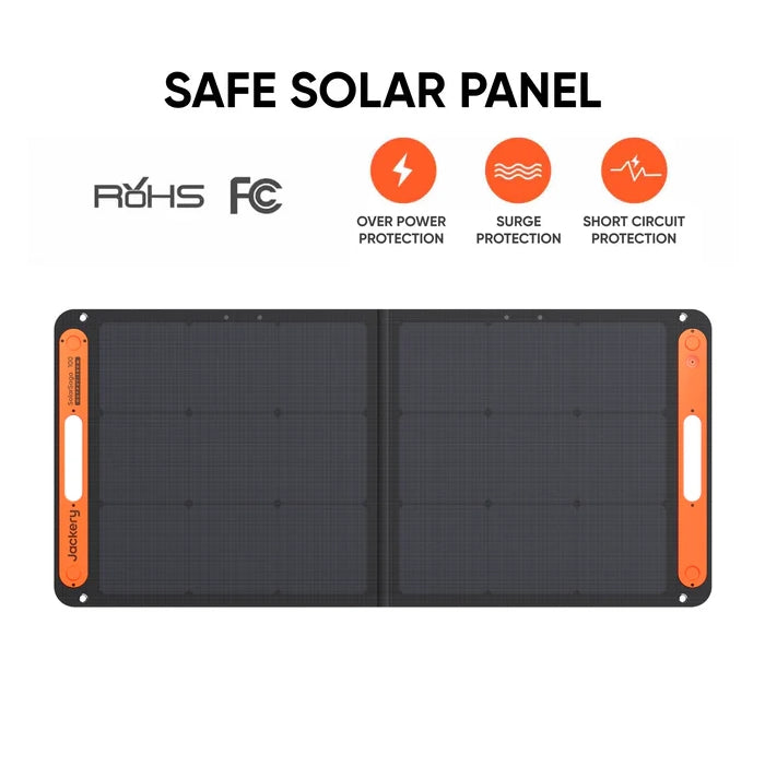 The panel is IP68 waterproof-rated, so it's tough enough to handle unexpected weather conditions. Integrated kickstands allow for quick, secure setup at an optimal angle to capture sunlight effectively. With wide compatibility for Jackery power stations and a simple plug-and-play setup, the SolarSaga 100W makes harnessing solar power easy and accessible—even for first-time users.