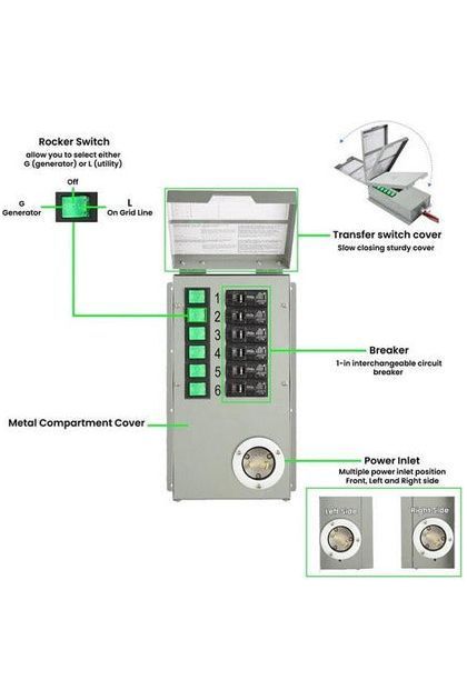 Natures Generator Power Transfer Kit Elite Description: This 6-circuit, 30 Amp manual transfer switch is designed for fast installation (in...