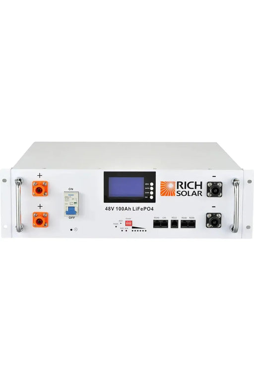 View full details  7,000 Cycles. LiFePO4 Lithium Battery. 20 Year Lifespan. RICH SOLAR 48V 100Ah lithium iron phosphate battery (Alpha 5 Server) has a much longe...