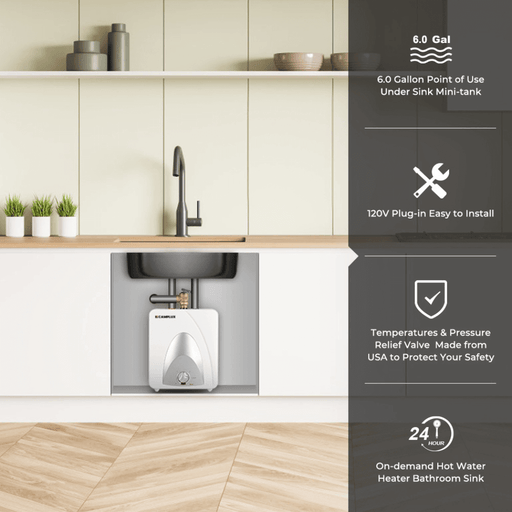 View full detailsSaving Energy & Money- Built in insulation foam, reduces heat loss. 6-gallon point-of-use mini-tank fits under your sink to provide hot water ...