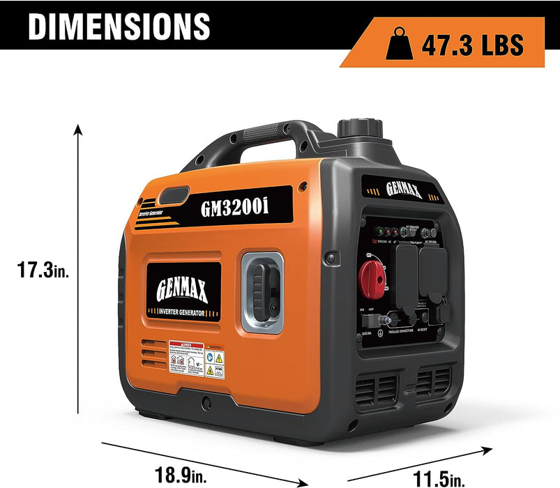 GENMAX GM3200i 30 Amp 2800W/3200W Gas Inverter Generator Parallel Ready New