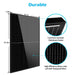 Waterproof: The solar junction box and solar connectors with an IP68 rating is completely protected from dust and will properly functional after Temporary immersion in water (up to 1m deep).